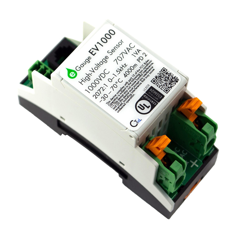 El sensor de alto voltaje eGauge (EV1000) es un transductor de voltaje completamente aislado que mide hasta 1000 VCC o 707 VCA y emite una señal proporcional de ±0,5 V.